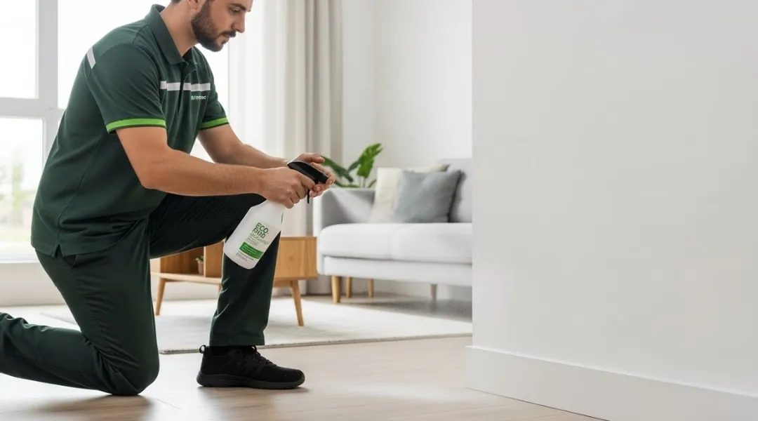 Only approved, low‑odor products are used, with clear preparation and re‑entry guidance for families and childcare flats.