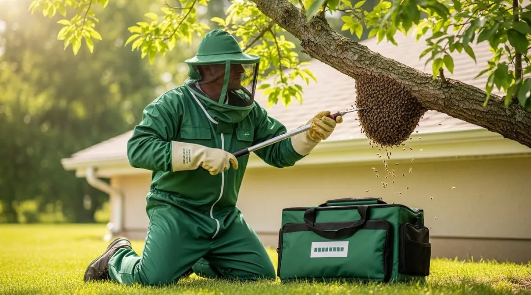 Safe honeybee handling and possible relocation for Al Nuaimiya façades, balcony cavities, and rooftop corners.