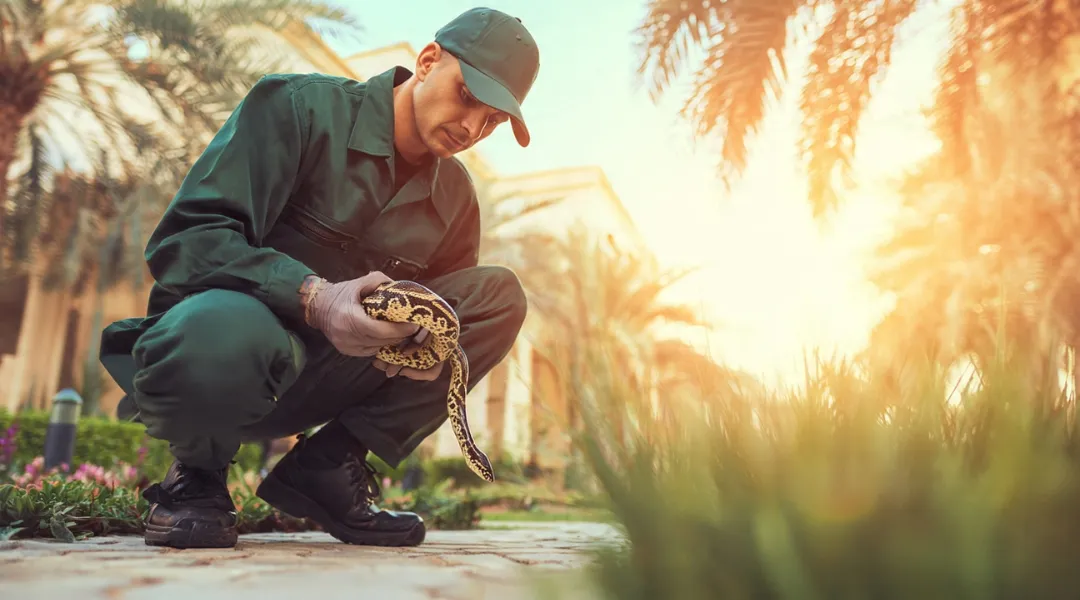 Humane snake handling around yard perimeters, sandy plots, and storage yards.