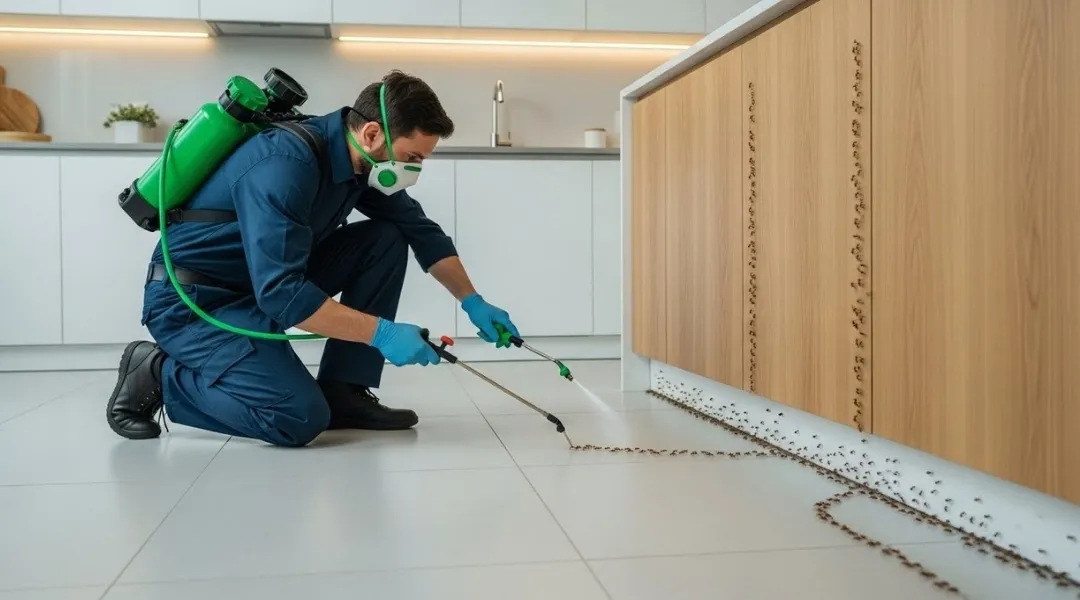 Targeted ant colony elimination to stop trails and nesting points in kitchens and gardens so ants do not return.