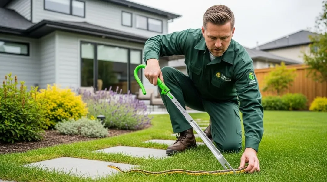 Humane snake removal along garden borders and sandy edges of the community.