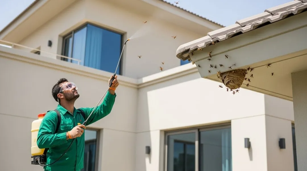Safe removal of wasp nests from signboards, balcony corners, and loading areas.