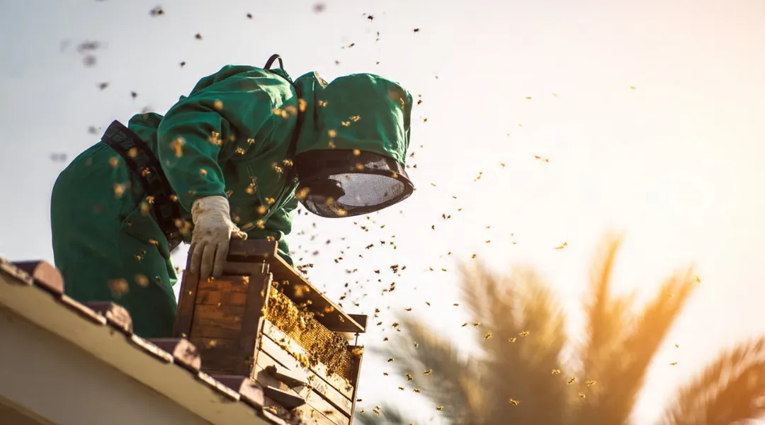Safe removal and potential relocation of honeybees from sheds and high façades.